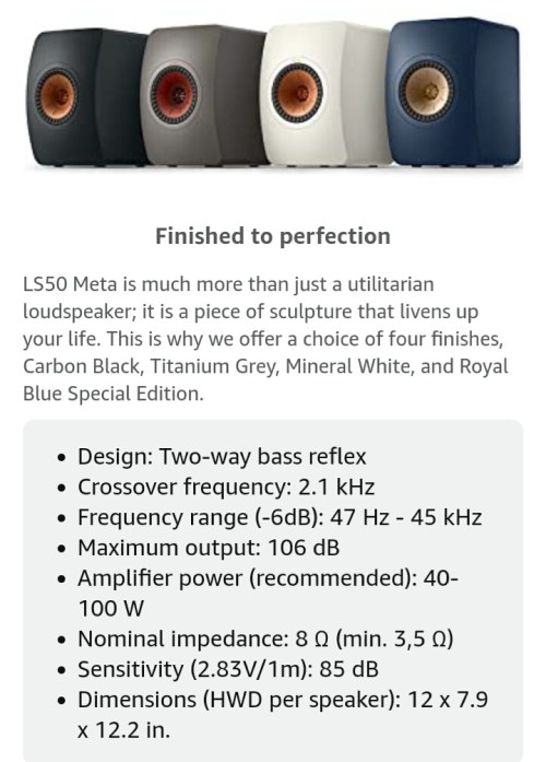 If you noticed above, a speaker like XTRIKE-ME 2.0 only supports the upper band of the bass frequency range. It doesn’t go lower than 160Hz, whereas a speaker like LS50 Meta covers a wider bass frequency range, going as low as 47Hz. This is a speaker you would like to buy if you are interested in a deeper bass. The lower the minimum the better.