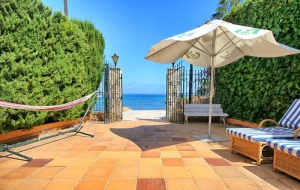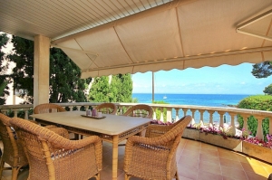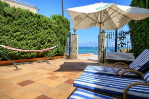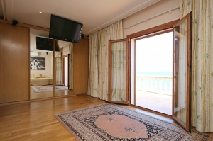 Beautiful house on the beach front with direct access to the sea. 4 floors, 450m2 of plot, 300m2 of living area, 6 terraces, living room with fireplace, separate kitchen, 5 bedrooms, 3 bathrooms, 1 toilet, marble and parquet floors, central electric heating, air conditioning, utility room, private garage for 2 cars . On the ground floor there is a guest apartment with kitchen, bedroom and bathroom.