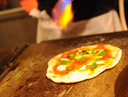 鉄板で焼き上げることで、底はパリパリ、ミミはふっくらモチモチ、他では味わえない絶品ピザに仕上がります!
